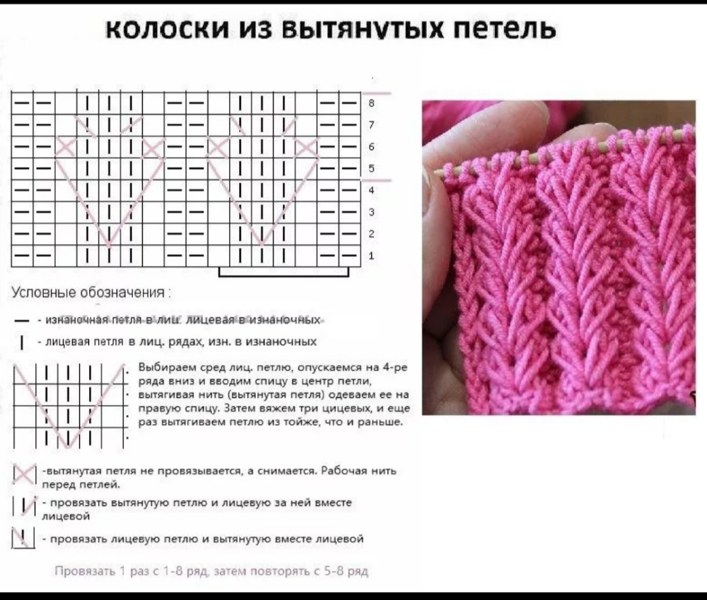 Схема крупной косы для начинающих с лр, ир вяжутся по рис. Накиды в ир провязываются ип: