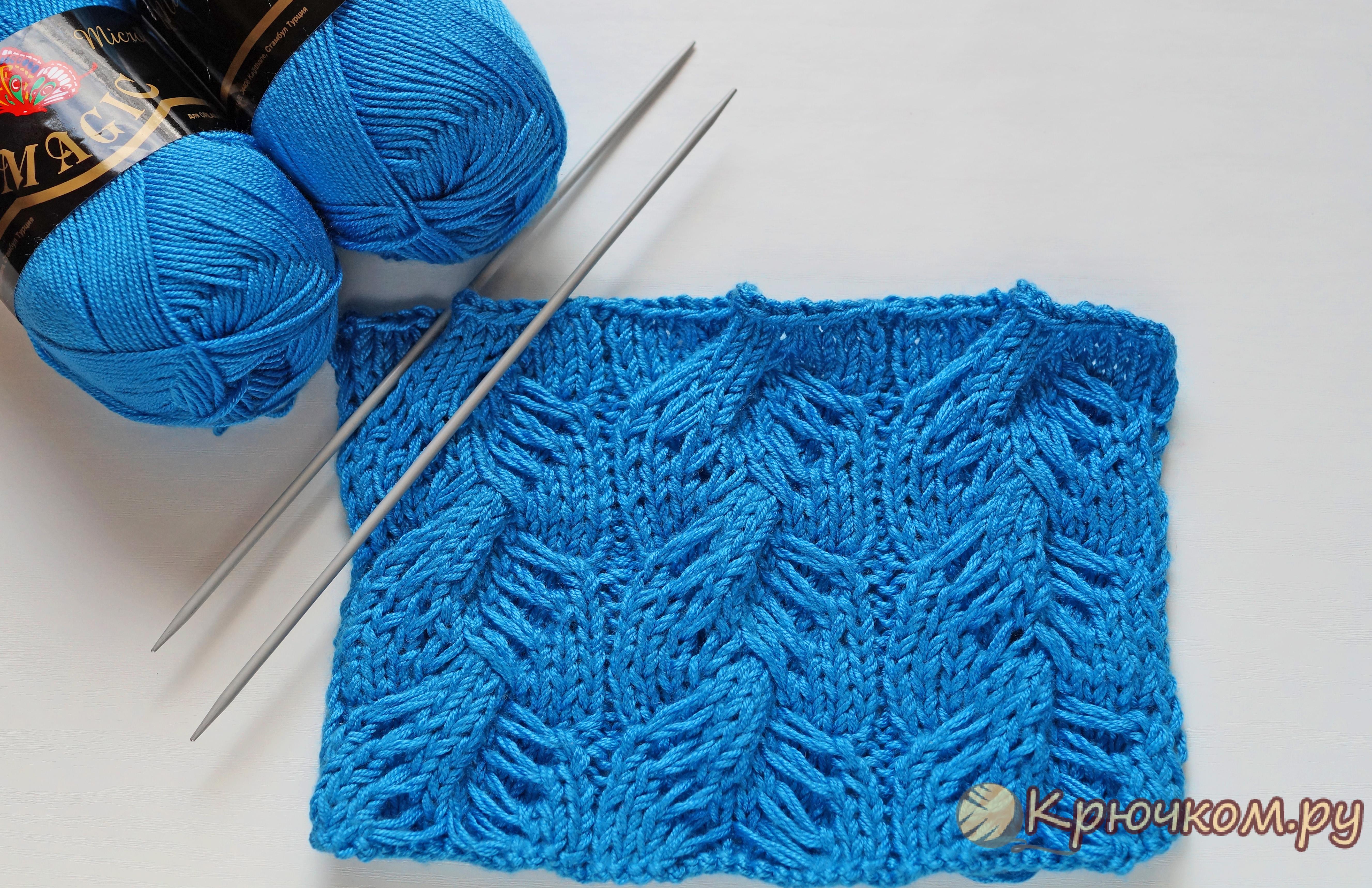 Комбинированный узор из кос — интересный узор, состоящий из переплетений различной ширины: