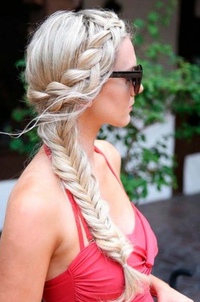 - Заплетите его в косу «рыбий хвост», перекрещивая между собой по два тонких локона.
