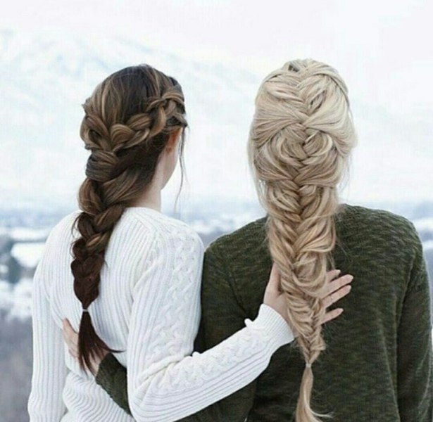 Прическа «два в одном» мгновенно привлечет внимание к прическам с двумя косами. Голландские косы начинаются спереди, как косички, и, достигая затылка, закрепляются на месте. Оставшаяся длина волос заплетается в две косы «рыбий хвост».