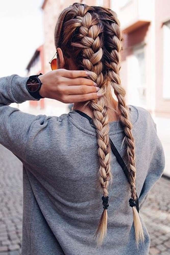Следующая прическа — еще одна из наших любимых! Здесь у нас есть два классических и гладких плетения. Нам это очень нравится, потому что косы такие аккуратные, а пряди волос создают эффектный узор. Такие волосы стильные, их легко носить, и они будут потрясающе смотреться на всех. Воссоздайте это или добавьте смелый цвет косам. Вы даже можете попробовать этот стиль с более короткой длиной волос.