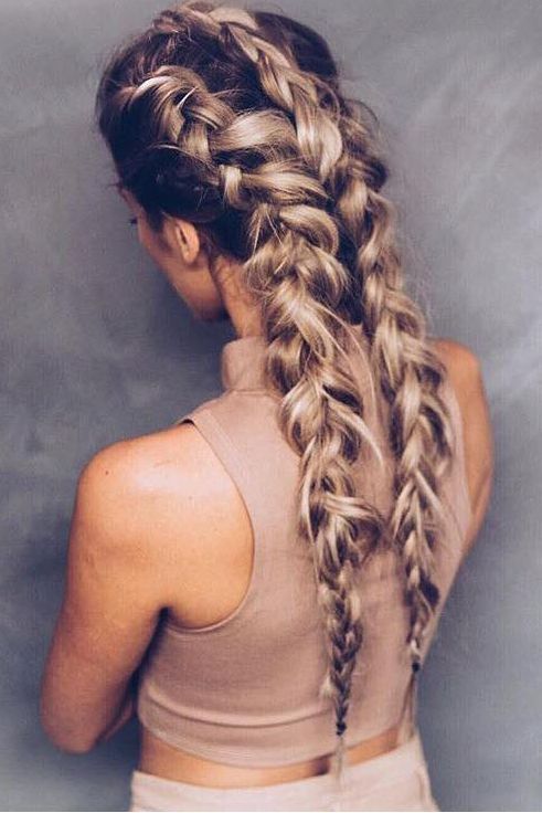 Если вы хотите, чтобы прическа была веселой и уникальной для лета, то эта прическа для вас. Этот стиль включает в себя две длинные косы с плетением на затылке. В волосы вплетены светло-розовые и голубые тона. Цвета выглядят так мило, а косы красивые, замысловатые и смелые. Такие волосы помогут вам выделиться из толпы. Эти косы можно воссоздать в любом цвете.