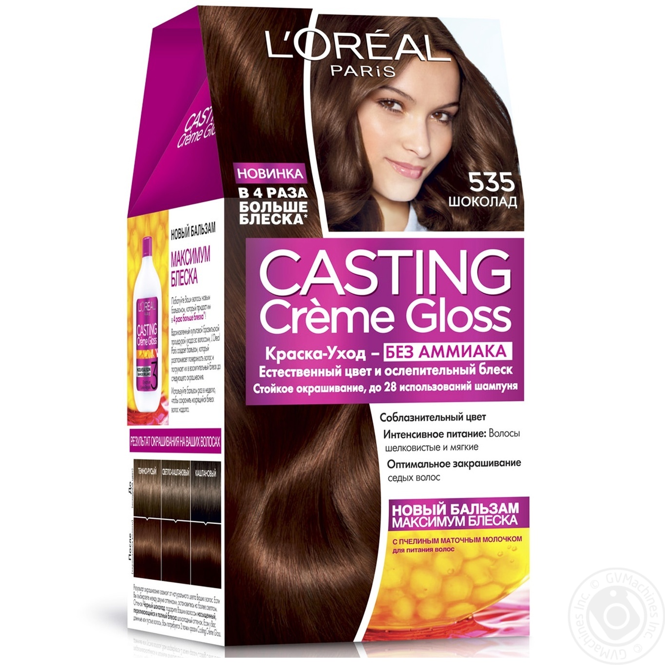 Краска для волос CASTING Creme Gloss от бренда L’Oreal Paris. Неплохая краска, с хорошими характеристиками, но если бы стоила дешевле, и бальзам был бы лучше, то было бы отлично. А так как Gliss kur, остаётся для меня более классной, она стоила 300 р. И были круче волосы по качеству после применения. Жаль только выбор цвета окрашивания на так велик.
