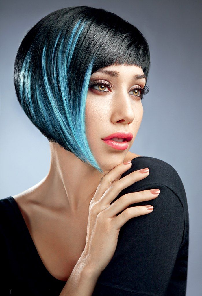 Например, трапециевидное или прямое каре с нависающими острыми прядями.