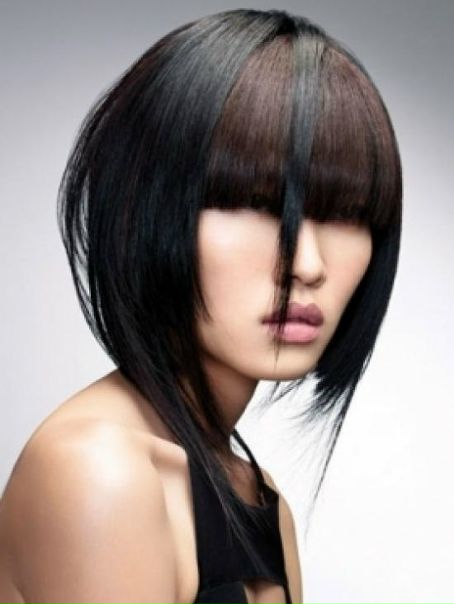 Казалось бы, незначительная деталь прически, как новая длина и форма челки, может внести оригинальный модный нюанс в Ваш облик. Прямая густая челкас тупым срезом, придаст стрижке яркий стильный акцент. Поэкспериментируйте с разной длиной челки — выше линии бровей, до линии бровей или прикрывающую брови.