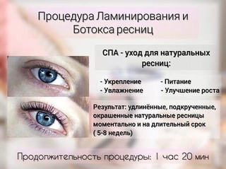 Общая процедура на оба глаза / брови должна занять 35-40 минут.