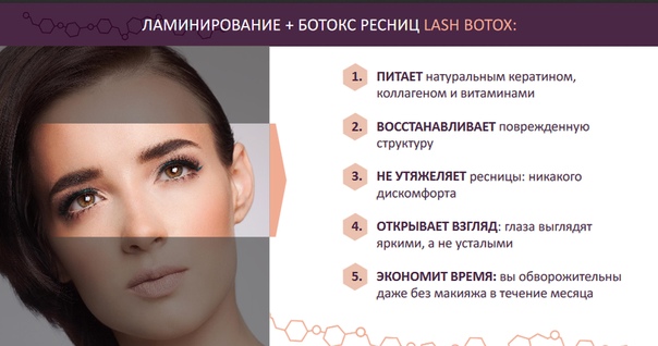 В состав компонентов ламинирования входят вещества, придающие ресничкам изящный изгиб, насыщенный цвет и блеск. Они также восстанавливают ресницы и защищают от неблагоприятного внешнего воздействия.