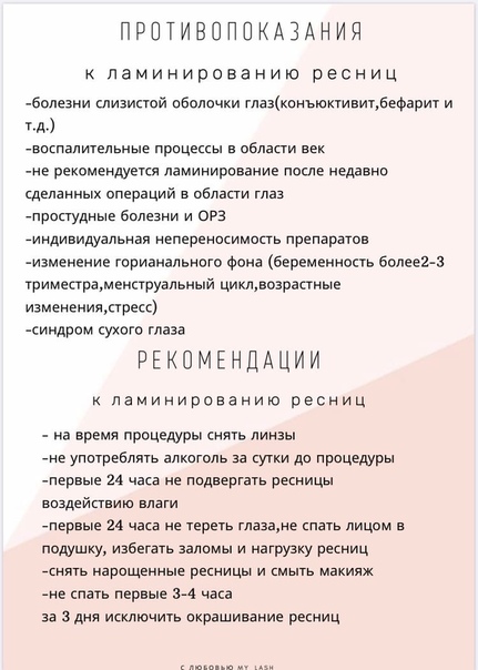 Также перед проведением процедуры ламинирования нужно обязательно уточнить у клиента о возможном наличии у него заболеваний и состояний, при которых проведение процедуры противопоказано.