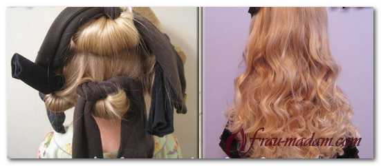 С тряпичными бигуди можно спать – они не будут мешать и не раздражают кожу головы. Завитые кудри продержатся целый день, а для лучшей фиксации можно закрепить прическу лаком.