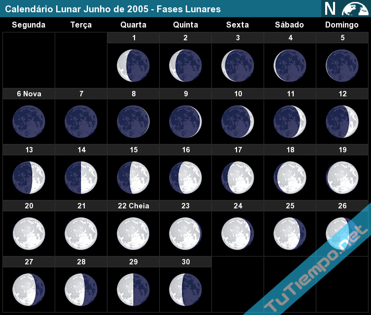Ориентация освещенной стороны Луны в северном полушарии. Лунный месяц — это время, за которое Луна проходит все свои фазы.