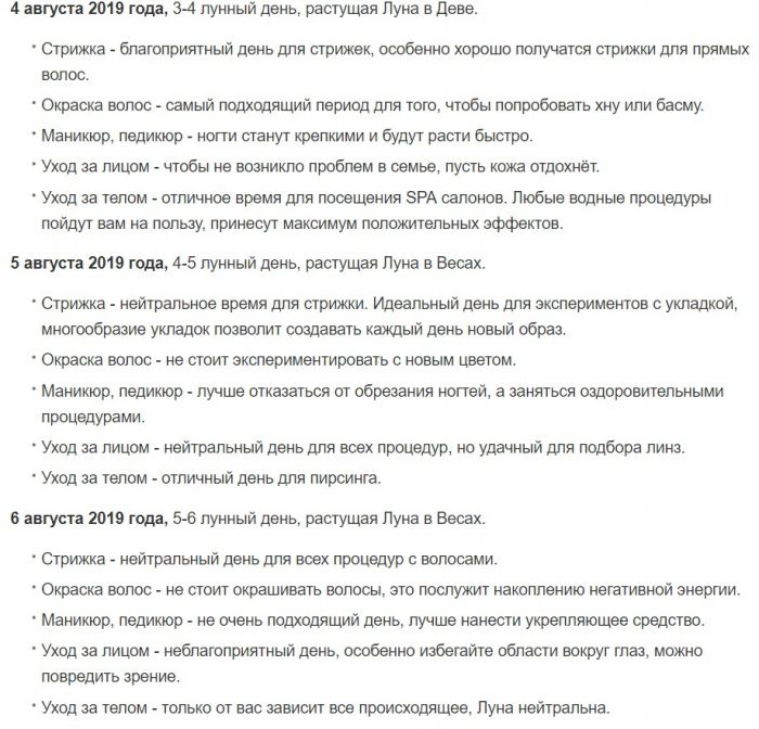 Польза и вред стрижки и окрашивания по дням в июле 2019 года