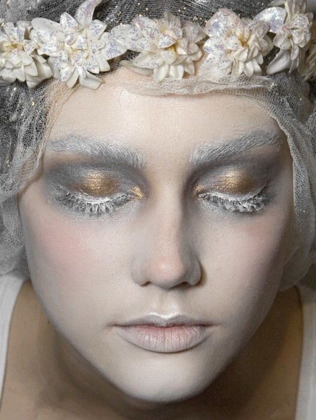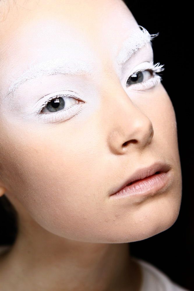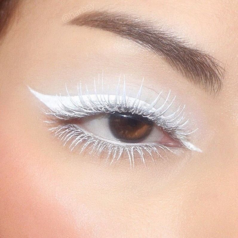 Покорить мужское сердце невозможно без выразительного взгляда. Белые ресницы и особый белый макияж наполнит взгляд мягкостью и притягательностью. Белые тона в макияже делают его необычным, стильным и удивительно подходят как к повседневному гардеробу, так и наряду для новогоднего карнавала.