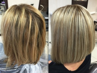 Если все делать правильно, то это мелирование можно сравнить с самым нежным мастером обесцвечивающим волосы, с солнцем. Тут нужно понимать, что любое обесцвечивание подсушит ваши волосы даже солнечные лучи на море. Вопрос в том насколько? Мы это делаем ровно на столько, чтобы волосы лучше укладывались и держали объем, быстро не пачкались, оставались блестящими, и вы не заметили разницу в качестве между до и после.