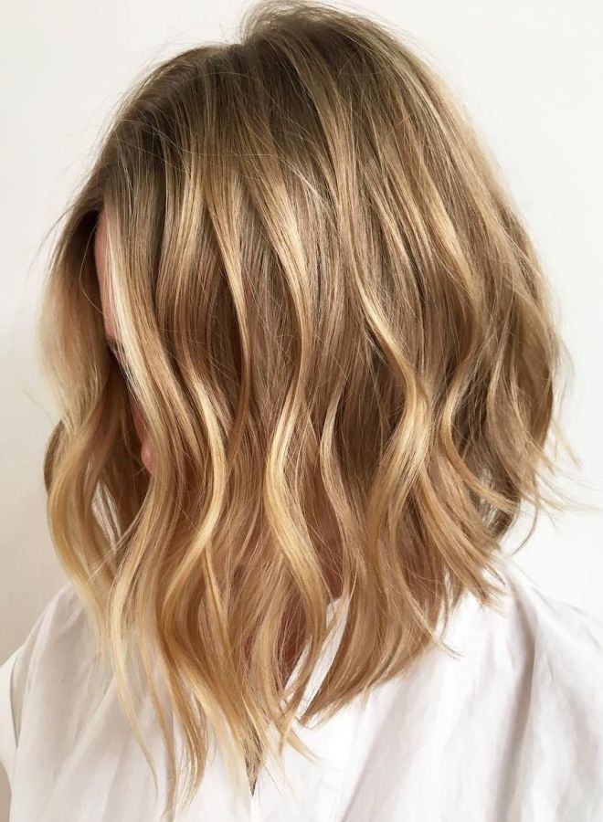Темно-золотистый блонд — это теплый цвет, который хорошо подходит к светло-коричневому базовому оттенку, но он не очень яркий. Если вы хотите немного сияния, нанесите несколько светло-бежевых светлых бликов на кончики, чтобы осветлить цвет, не создавая резкого контраста.