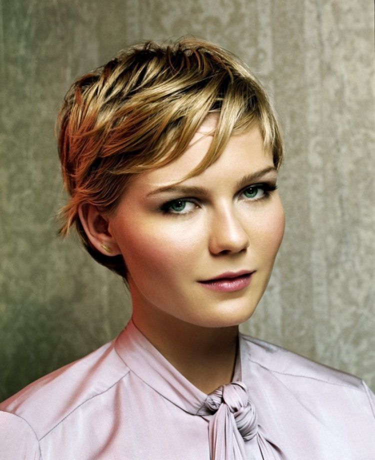 Вот дерзкая версия пикси, которая льстит квадратному лицу. Этот волнистый крой придает размер и объем, не требуя особого ухода. Короткое платье естественно красиво для блондинки, этот крой подчеркивает глаза и минимизирует изменение формы лица лба.
