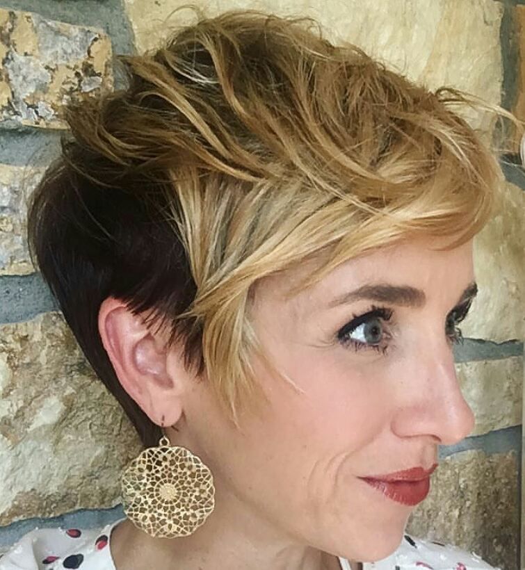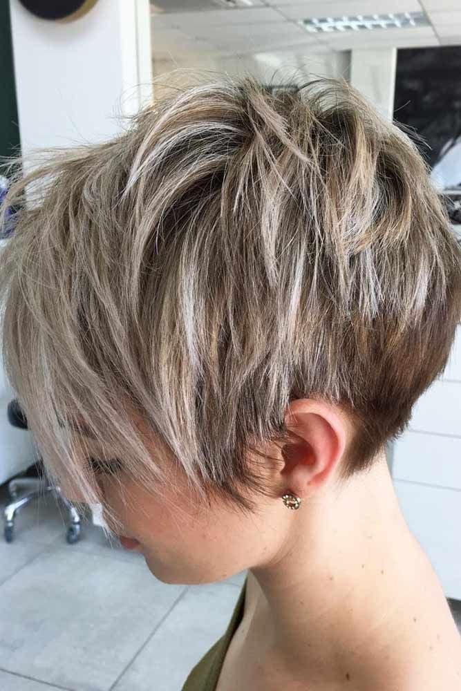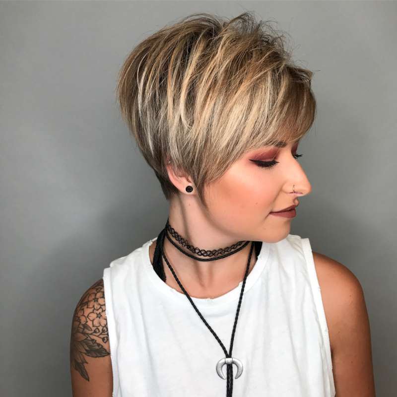 Этот умный пикси очень женственен и подходит женщинам с тонкими волосами, которые хотят выглядеть более густыми и модными блондинками.Более длинные слои без высоты наверху, контрастирующие с более темными корнями, создают впечатление густых волос и лучше всего подходят для длинного или овального лица.