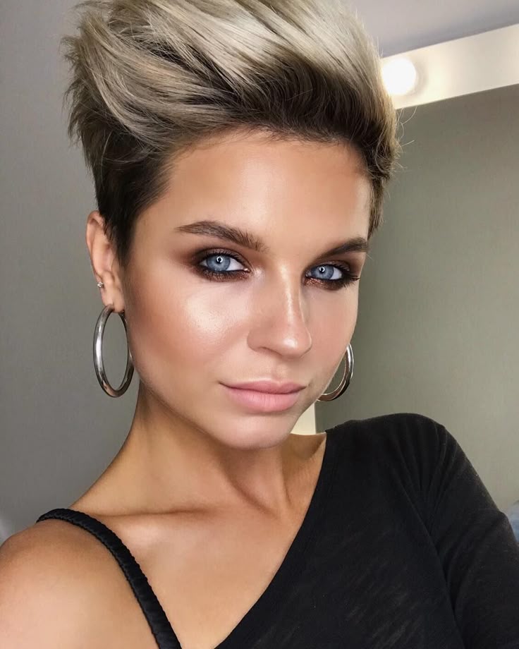 Если вы стремитесь к полному изменению, выберите этот стиль. Окрашивание волос в блондинку и короткая стрижка пикси с боковой челкой смотрится великолепно. Одна сторона значительно короче другой, и это работает. Новая прическа может быть уникальным опытом, но когда вы радикально меняете и красите волосы, вы чувствуете себя прекрасно.Сделайте макияж и сделайте на лето стрижку пикси и раскрасьте ее.