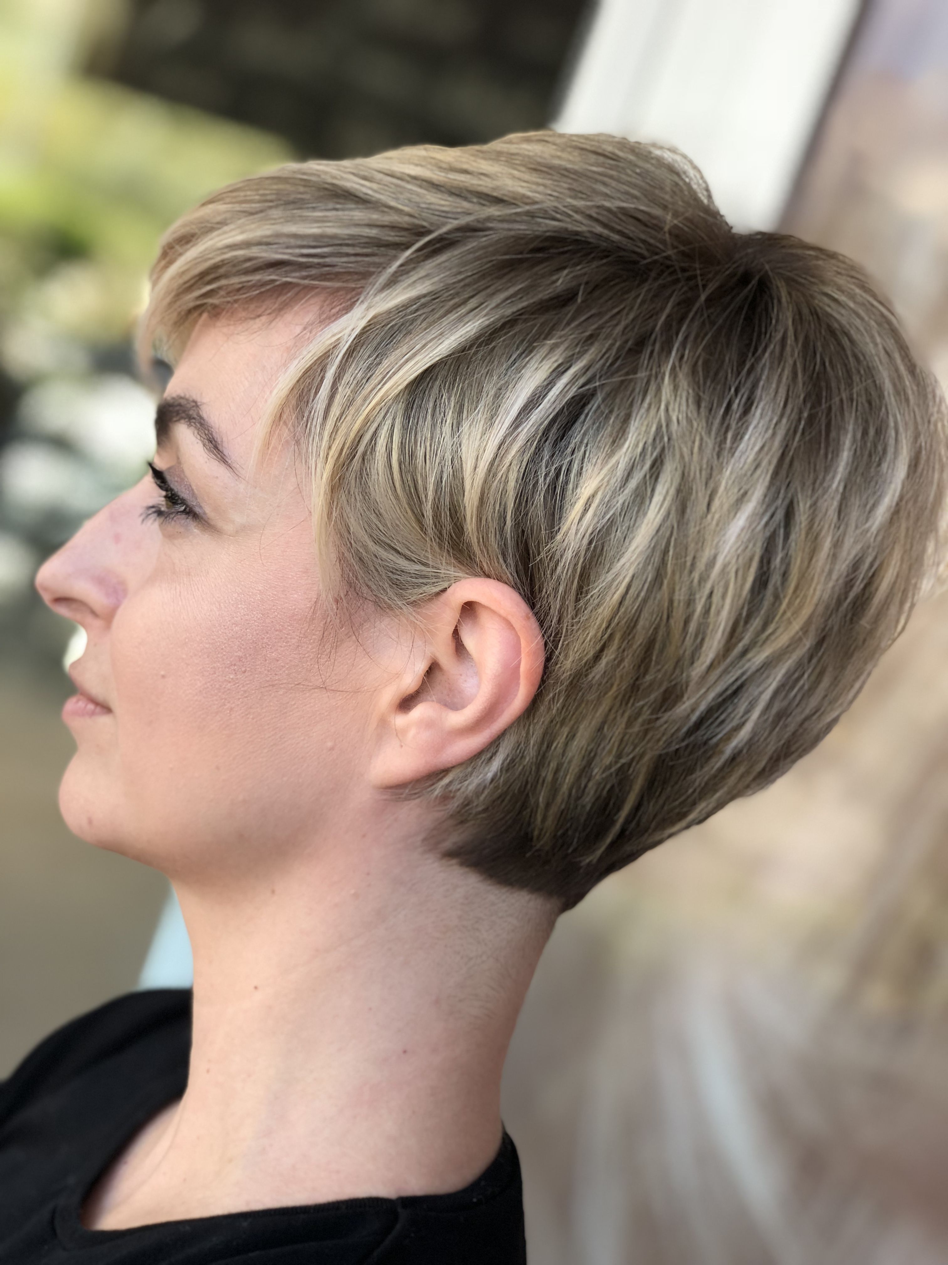 Хотя короткая длина «Пикси» не позволяет выполнить полноценную растушёвку цвета, но способы подчеркнуть объём и структуру всё же есть.