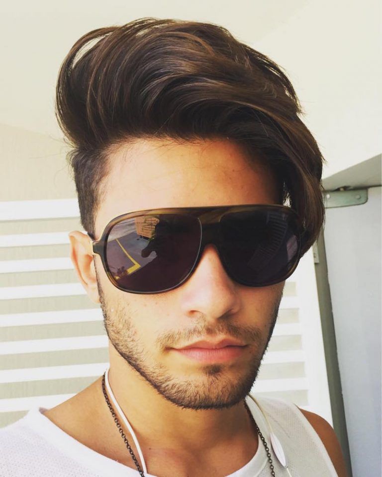 Это наиболее популярная стрижка среди мужских. Она представляет собой короткие или выбритые виски и затылок, и длинные волосы сверху, которые можно уложить назад, на сторону или вверх. Такая стрижка подойдет для всех типов волос и любой формы лица, она легко трансформируется и в повседневный, и в деловой стиль.