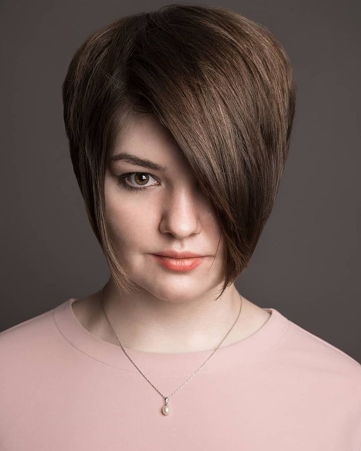 Отличным вариантом для девушек с полным лицом или круглой формой лица станет стрижка Боб, с асимметричными удлиненными передними прядями волос. Эта модная причёска в 2020 году вновь возвращается в моду. Смотрится она невероятно элегантно и ярко. Главным преимуществом этой причёски является дополнительный объём волос у корней. Такая причёска поможет смоделировать форму лица, а также сделает весь образ невероятно молодым и привлекательным. Это яркая стильная молодёжная причёска, на укладку которой у Вас уйдёт всего лишь несколько минут.