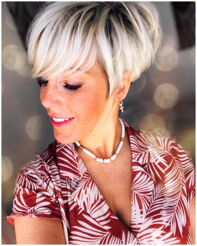 Более того, эта коротко остриженная стрижка дает прекрасную возможность попробовать новый забавный цвет волос. «Креативный выбор цвета может добавить этому образу дополнительную привлекательность», — объясняет Ривера. Почему бы не смешать вещи со свежим рыжим или ярким платиновым блондом? Мы не можем придумать лучшего способа оживить ваш образ и сохранить молодость!