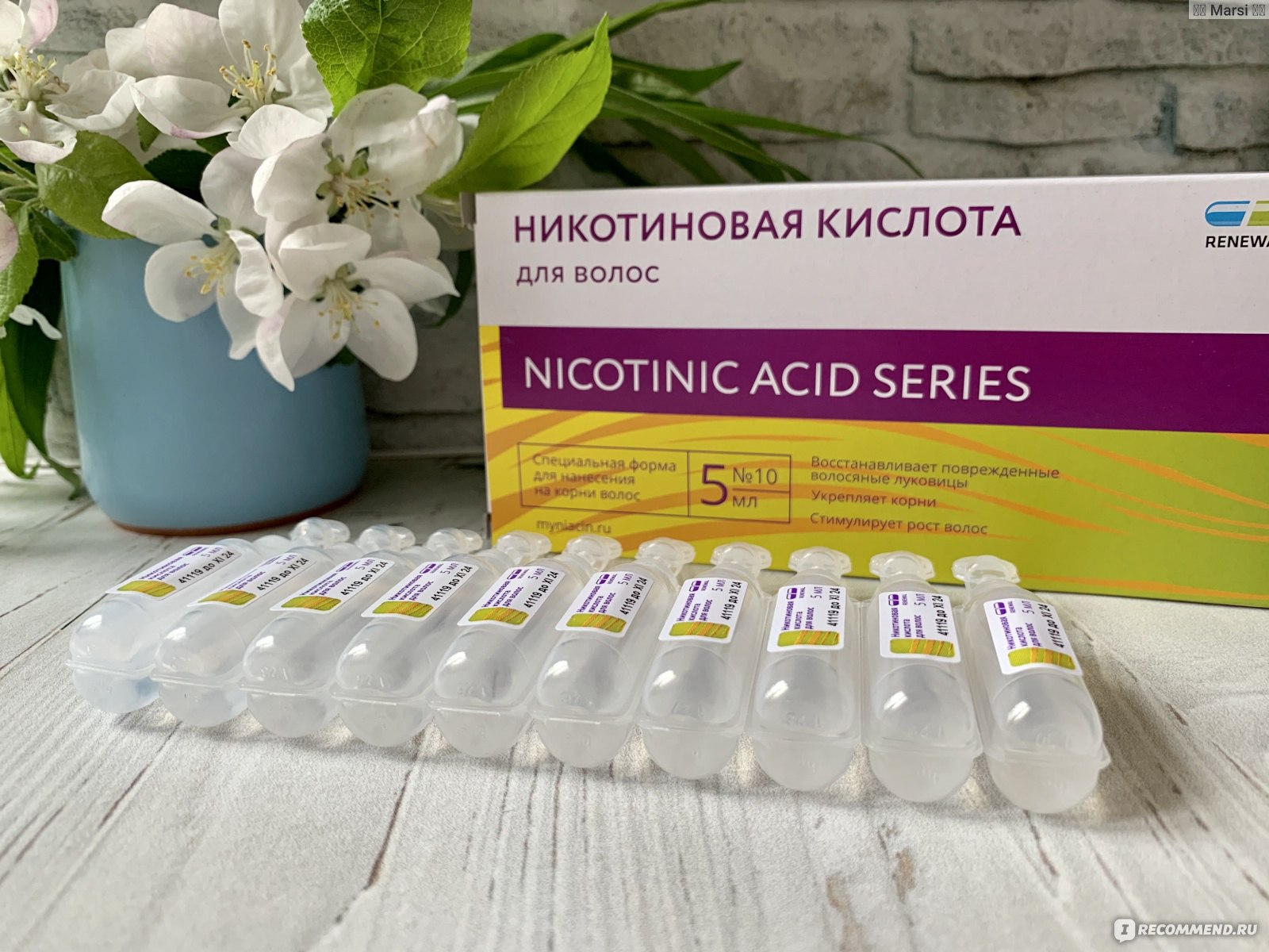 На видео- никотиновая кислота для волос в ампулах: