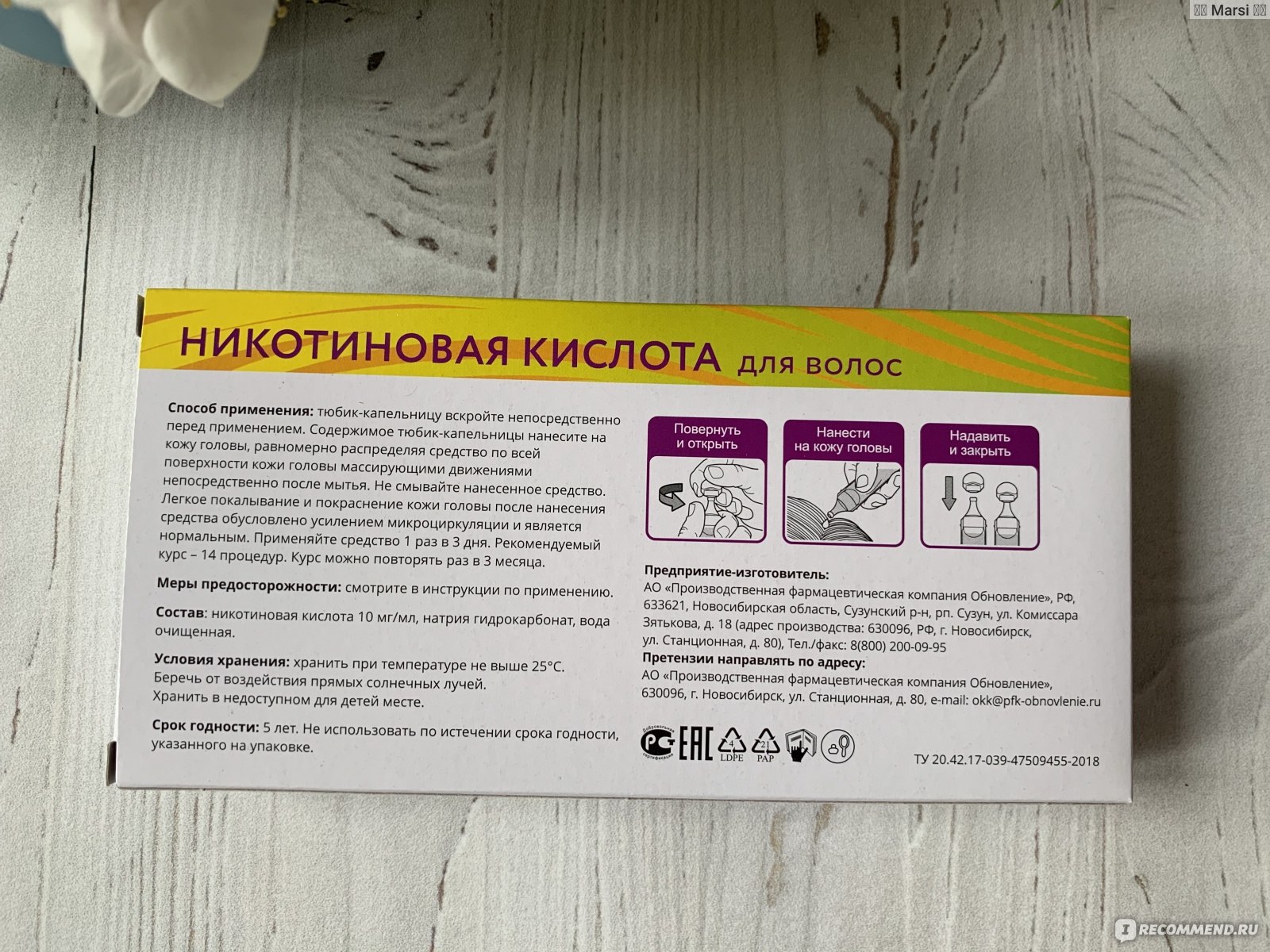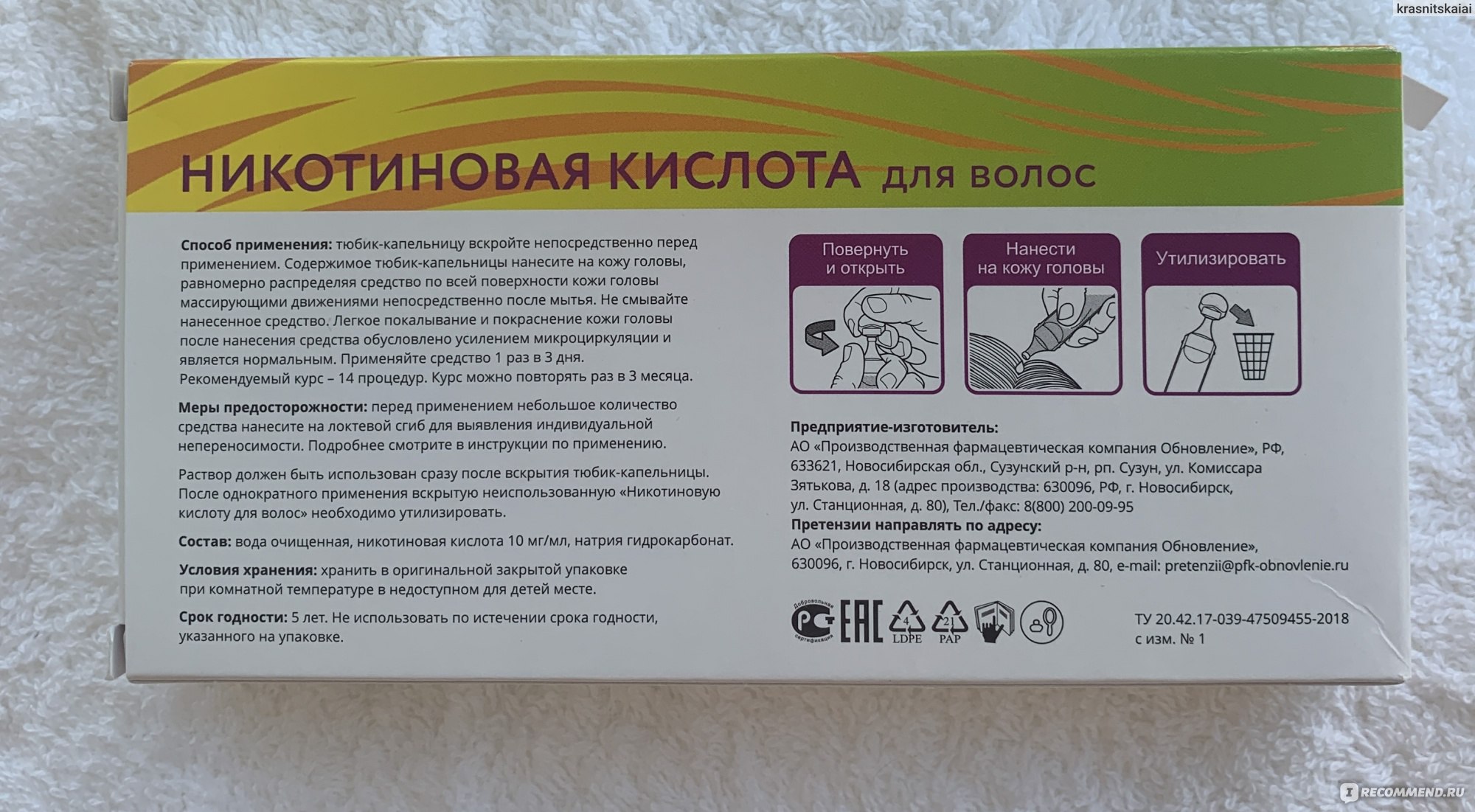 - Никотиновую кислоту нужно наносить сразу после ее открытия. Уже через несколько минут она утратит свои качества.