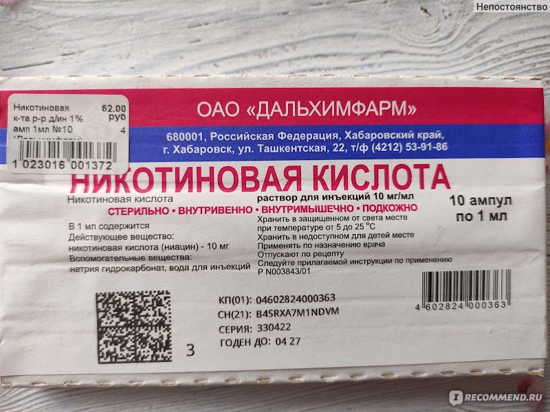 На видео- никотиновая кислота в ампулах инструкция по применению: