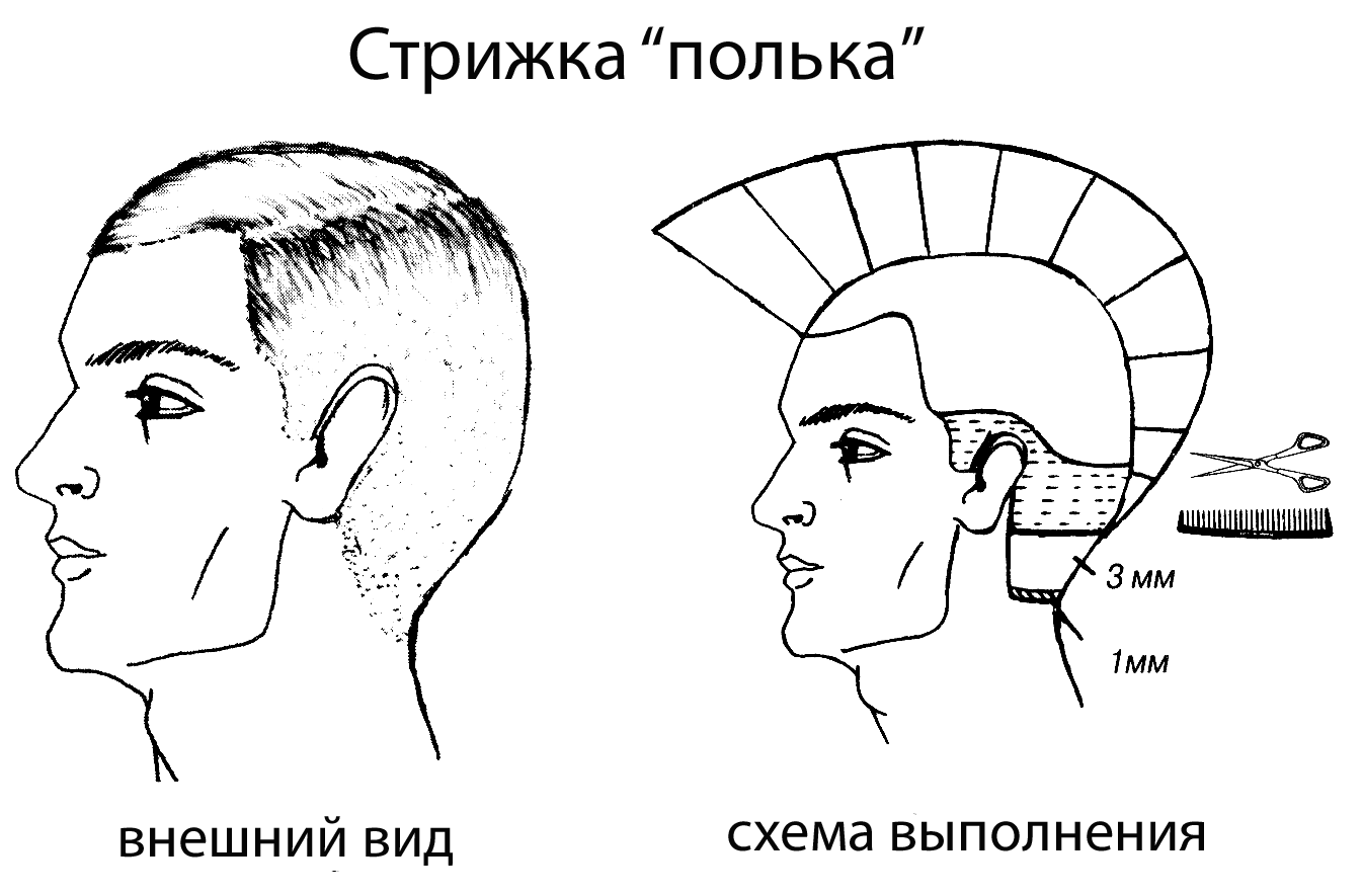 - Беря во внимание затылочные области головы, остричь волосы в зоне висков.