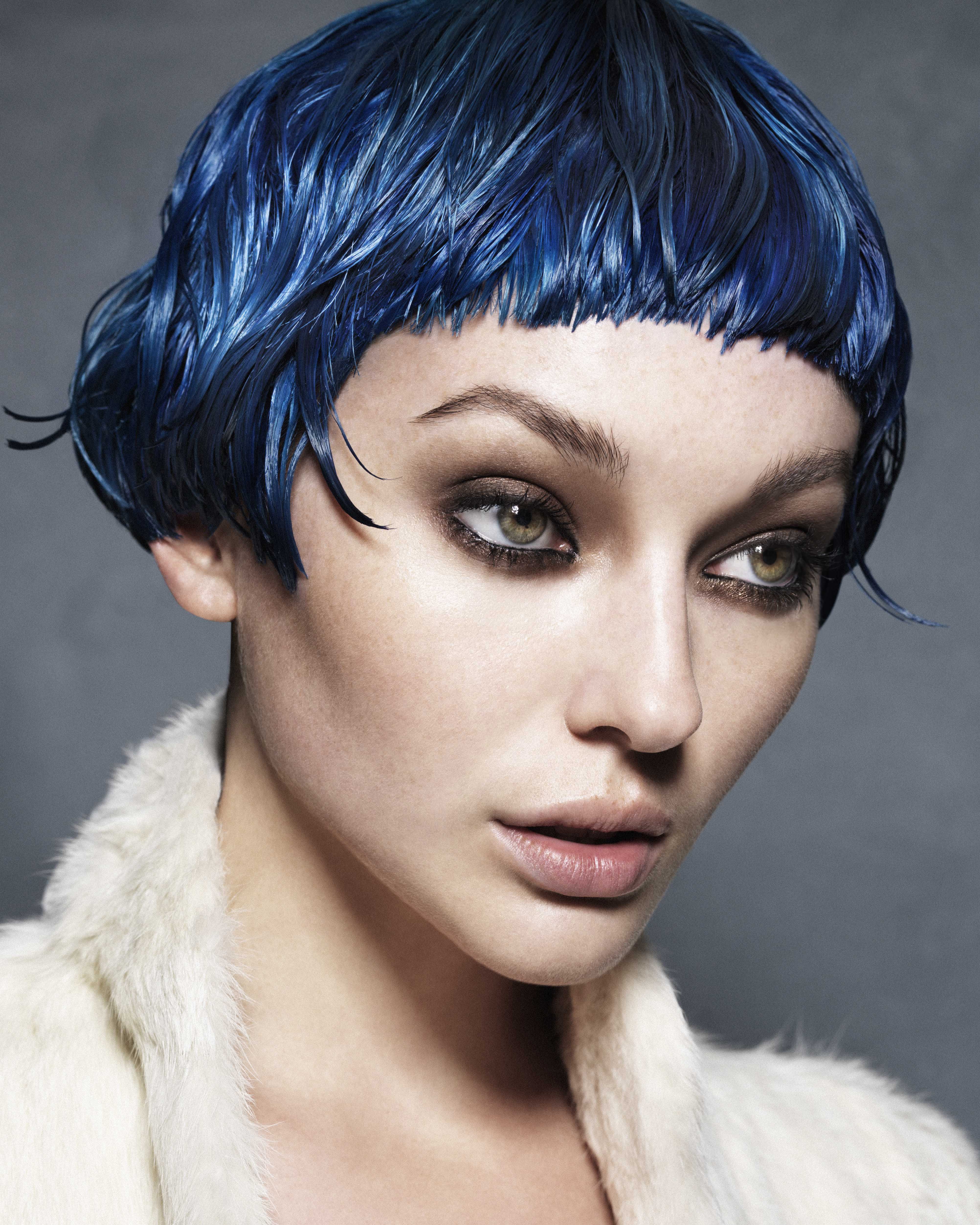 Для этой короткой, острой стрижки важно добиться легкой, пушистой текстуры волос.