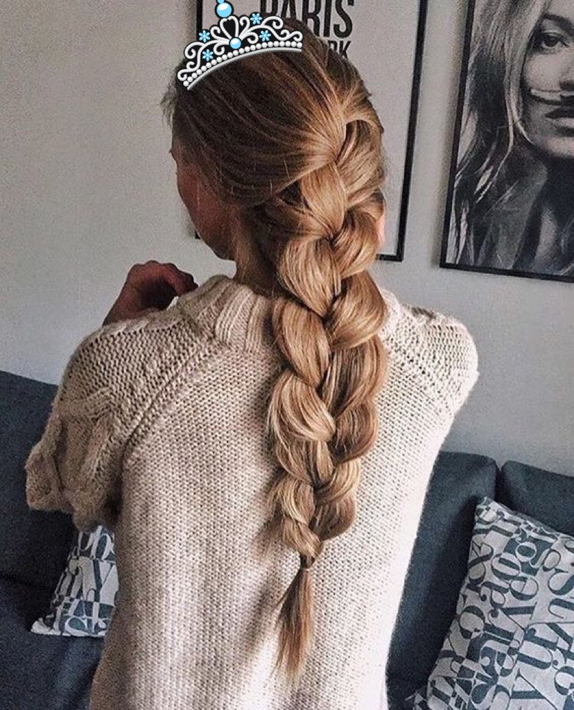 Эта удивительно красивое плетение на длинные волосы подкупает простотой – с ним сможет справиться каждый! С такой шикарной прической можно идти «в пир и мир», а можно и на работу.