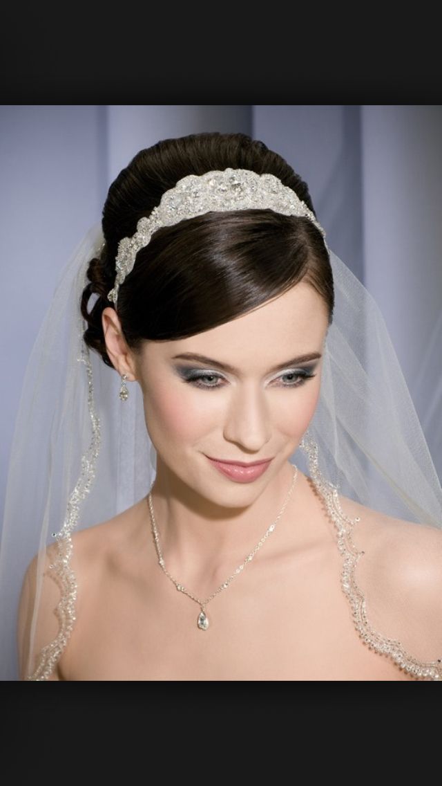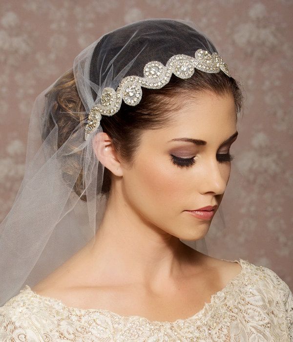 Одноярусная фата с ободком сделает образ невесты изысканным, женственным.