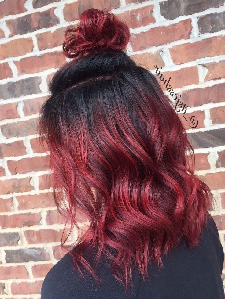 Окрашивание волос в красное омбре Идея № 2: Омбре с черным в красный. Если у вас черные волосы, подумайте о том, чтобы придать своей гриве оттенок красного цвета с эффектом омбре. Контраст тонов оставит вас с модным огненным цветом волос.