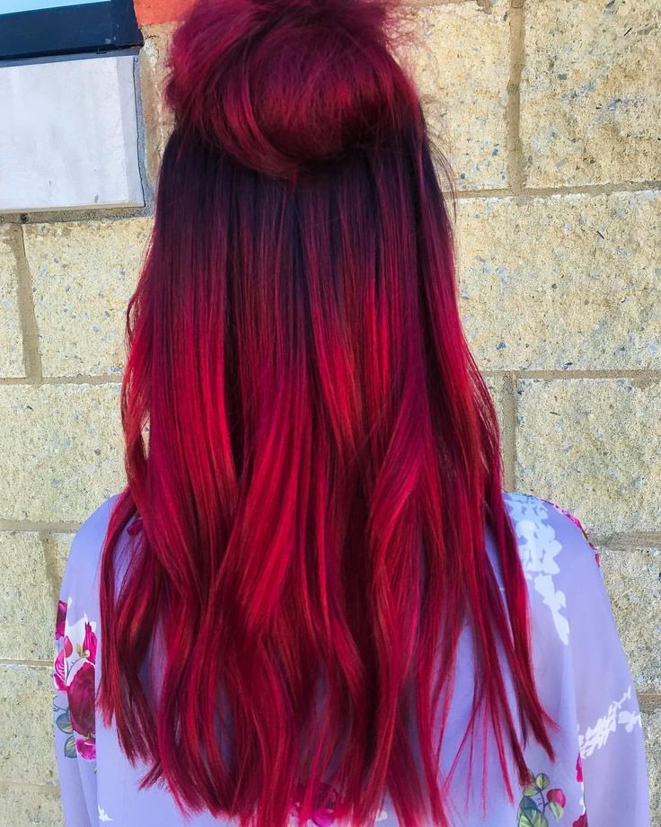 Кроме того, вы можете поэкспериментировать со своими волосами, сделав красное омбре с подрезом, чтобы создать эффект омбре без резких линий.