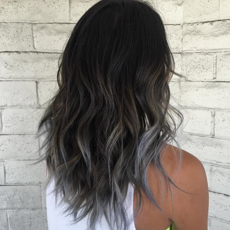 Прически с эффектом омбре для черных волос с серебристыми/седыми кончиками