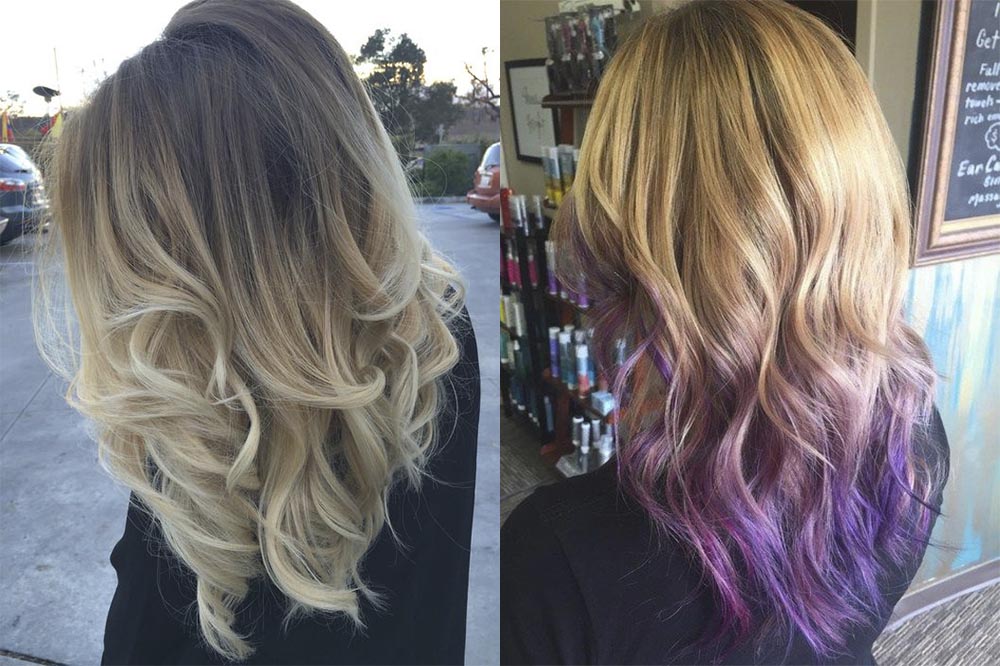 Корни и кончики имеют натуральный цвет, окрашивание проходит посередине; - разноцветное омбре. Популярно среди молодежи, а также уверенных в себе девушек. При окрашивании концов используются ярки цвета краски. Офисным работникам и деловым людям, где нужно соблюдать строгий стиль, эта технология не подходит.