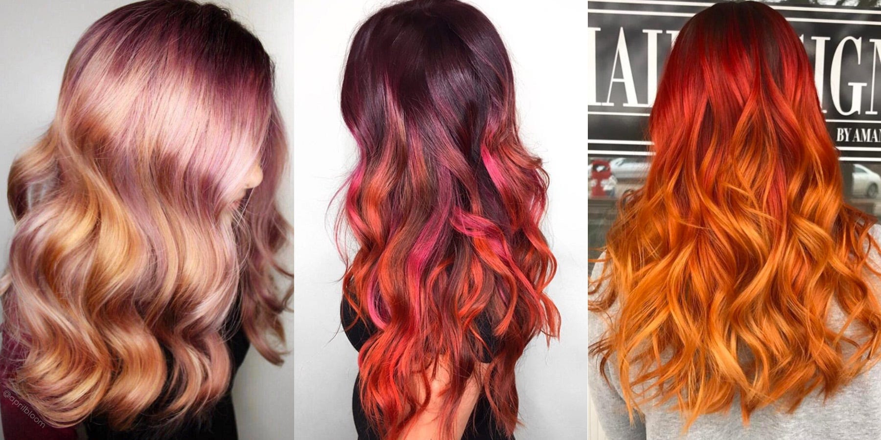 Завораживающе красивы варианты переплетения оттенков огненного рыжего, мандаринового, кораллового, клубничного, с белыми вкраплениями. При выборе схемы окрашивания значимым моментом является цвет вашей кожи, глаз, природного цвета волос – то, что специалисты типологизировали и назвали «цветотипом». Девушкам типов «весна» и «осень» палитра оттенков пламени прекрасно подходит во всем многообразии.