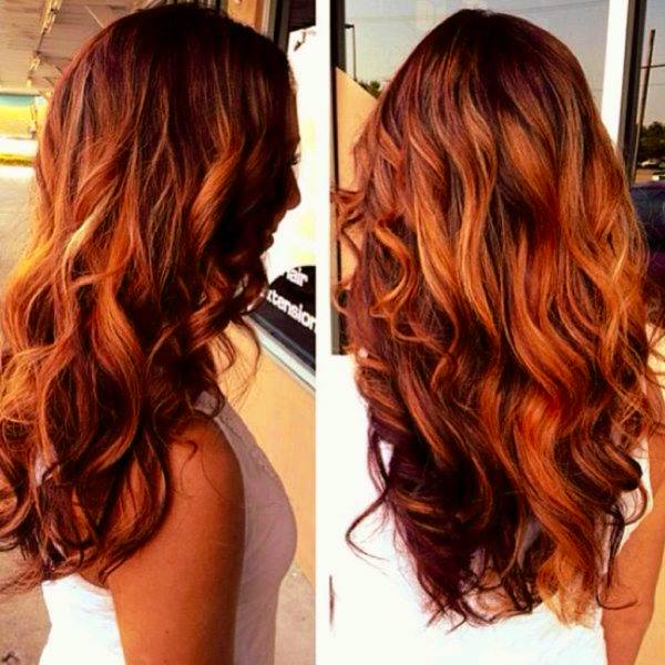 - Для рыжеволосых от природы девушек вариант с переходом от натурального светло-рыжего к красным оттенкам.