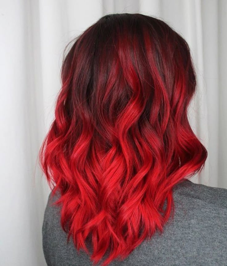 Различные оттенки красного и кораллового смешиваются вместе в одной прическе для резкого, огненного эффекта.