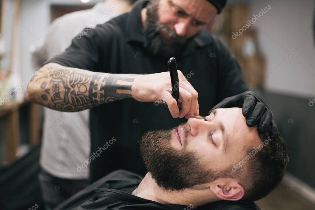 Процесс бритья с использованием опасной бритвы похож на ритуал. Он занимает довольно продолжительное время и включает в себя очищение, распаривание и массаж лица.Перед бритьем бороду намыливают помазком для смягчения волос бороды. Существуют различные технологии и способы бритья, в зависимости от умения мастера и роста волос.