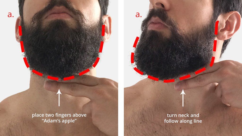 Большинство бородачей новичков окантовывают шею слишком высоко. Оптимальное место, где должна проходить линия окантовки, это там где шея соединяется с головой. Чтобы успешно это сделать, нет необходимости приподнимать голову, и стремись сформировать закругленную кривую от одного уха к другому.