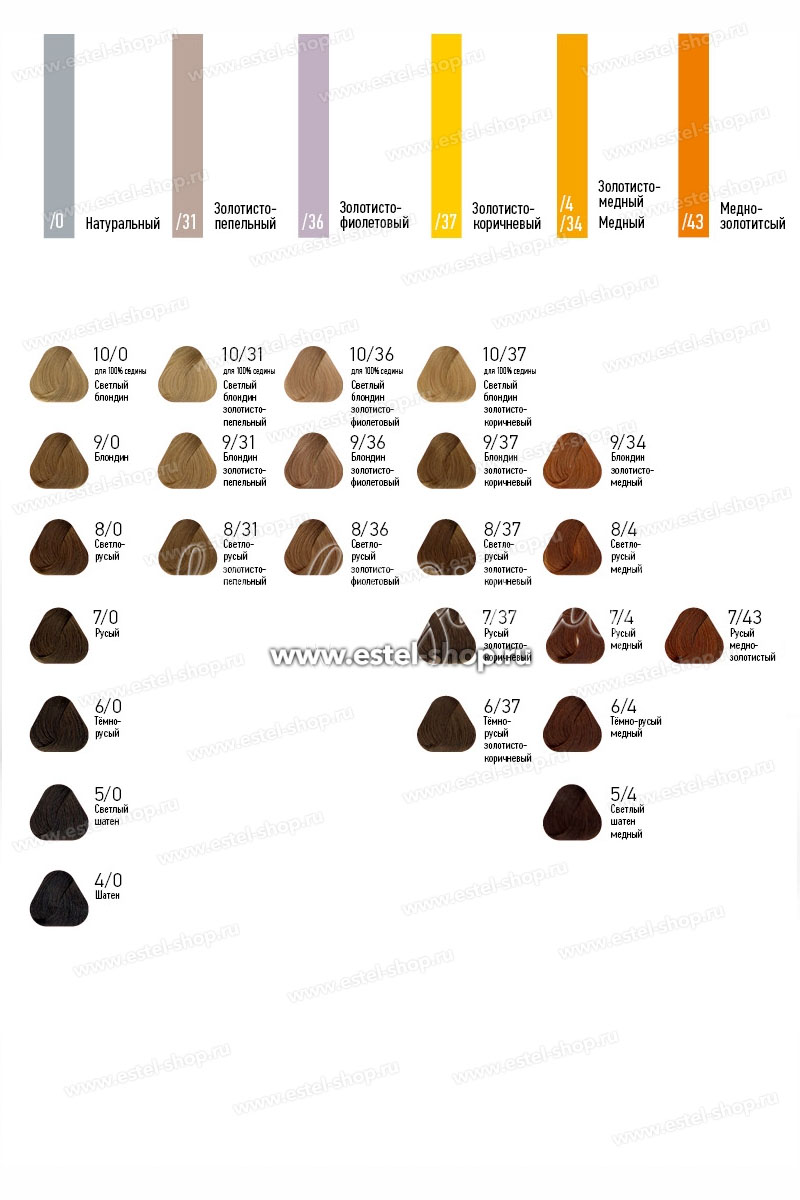 Одна из самых популярных красок для волос, все палитры цветов краски Эстель (с фото). Для стойкого окрашивания и тонирования волос. Каталог краски Estel