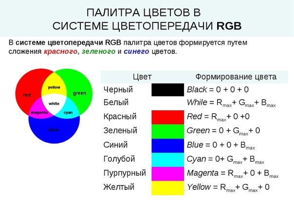оказывается цветом, который мы видим. - Цветовые модели RGB : RGB означает красный, зеленый и синий. Это относится к компьютерам, телевизоры и электроника. Модель RGB представляет собой аддитивная модель, означающая, что цвета создаются через световые волны, которые складываются вместе в определенные комбинации для получения цветов.