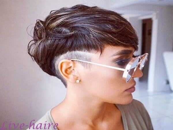 Кроме того, если вы желаете выделиться и сделать оригинальные короткие стрижки пикси, несхожие с классическими видами причесок, тогда сделайте рисунок с помощью выбривания, что несомненно выделит вас, и при всем этом смотрится очень эффектно.