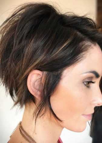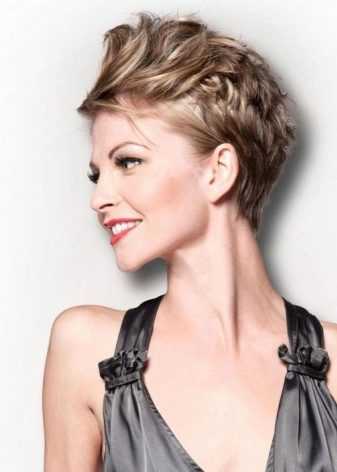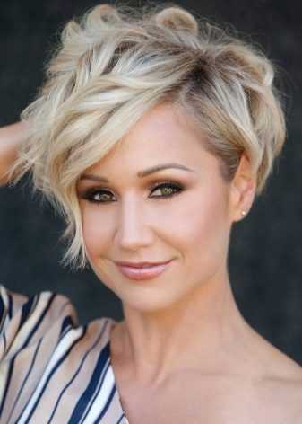 — короткая — здесь предпочтение отдается варианту ультракороткому, который будет дополняться соответствующей длиной волос и короткой челкой, а во время укладки необходимо на затылке волосы взъерошить;