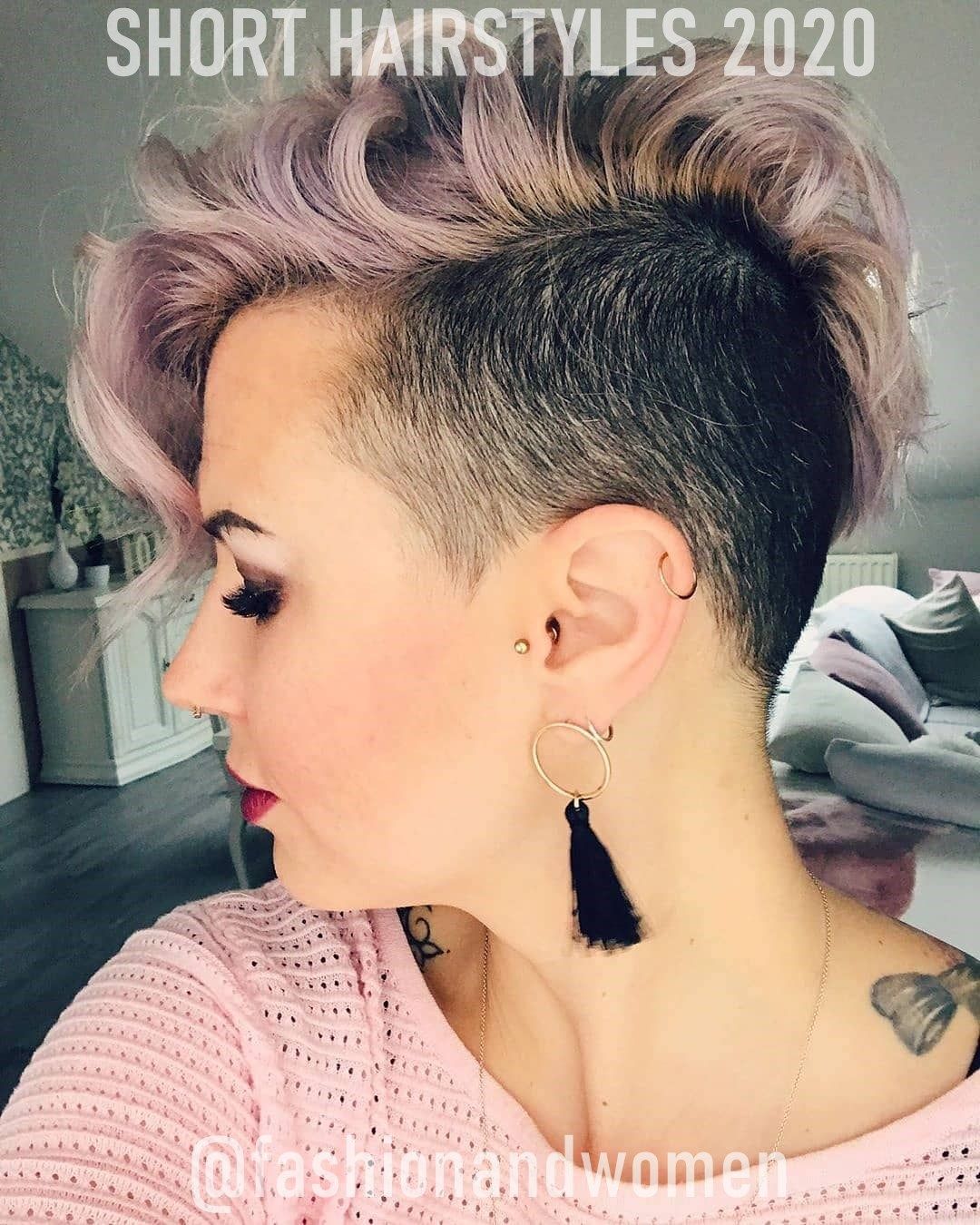 Пастельные оттенки, достойные Pinterest, потрясающе смотрятся на стрижке пикси с выбритым челом. Просто будьте готовы к регулярному окрашиванию, так как эти модные тона быстро тускнеют!
