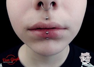 У него вертикальный пирсинг штанги, а также несколько колец в носу и губе. Если вы ищете несколько пирсингов, это отличный тому пример.