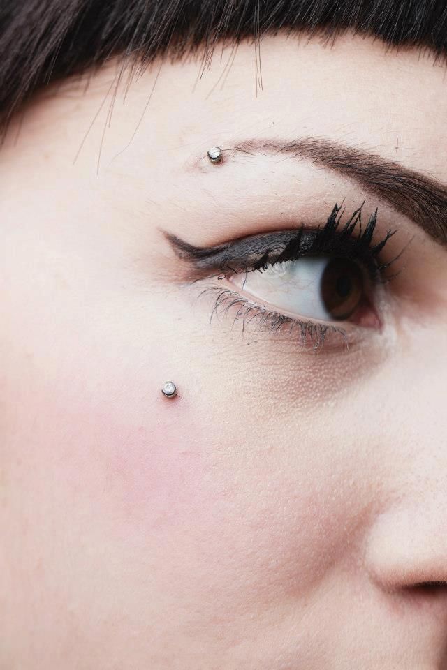 Этот пирсинг расположен напротив брови, ниже глаза и на том же расстоянии от глаза, что и стандартный пирсинг брови.