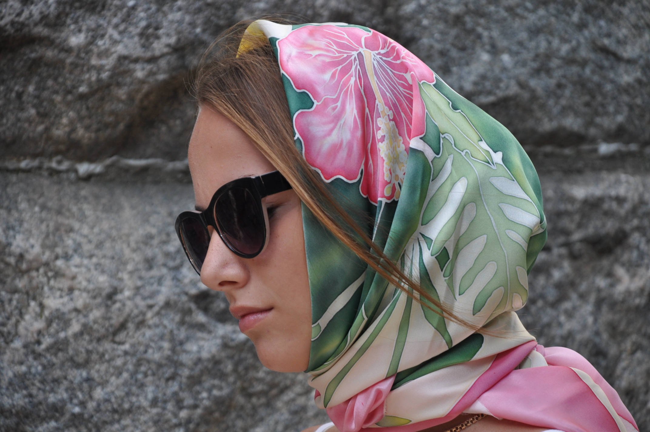Так, Жаклин Кеннеди и Мэрилин Монро предпочитали выходить в свет в брючных костюмах, повязав на голове шелковый платок как косынку и дополнив элегантный образ крупными темными очками. Брижит Бардо и Джейн Фонде нравилось небрежно обволакивать платком голову и забрасывать концы шелкового аксессуара за спину.