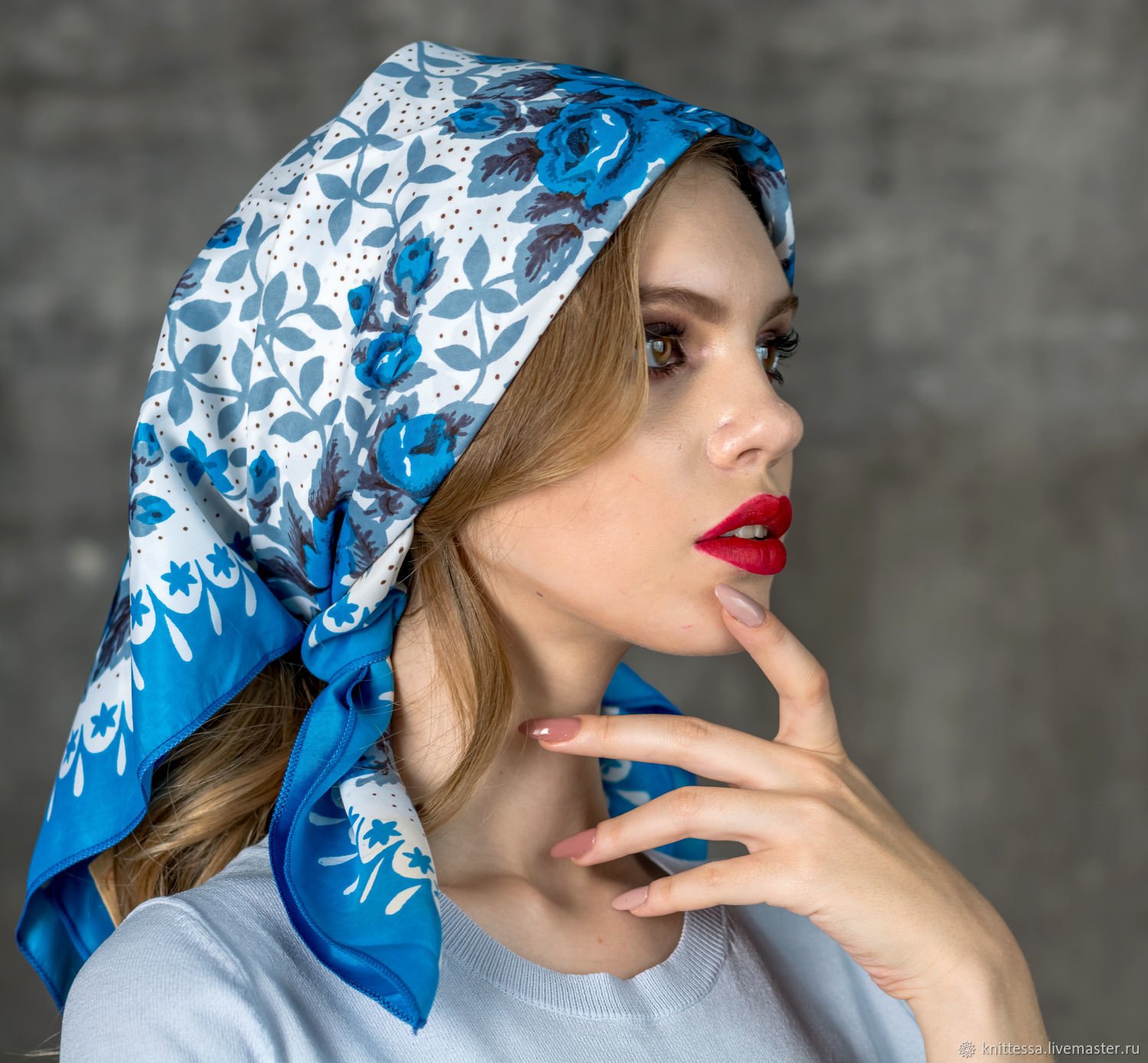 Косынка, завязанная под подбородком